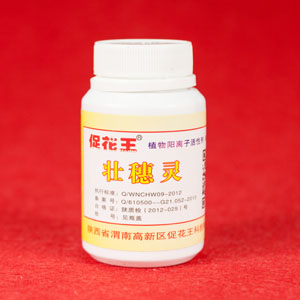壯穗靈膠囊:每瓶60粒。在50--80公斤水中加本膠囊1粒,可提高農(nóng)作物受粉、受精、灌漿質量,增加千粒重。適用于玉米、麥子、水稻、芝麻、高粱、向日葵、油菜、燕麥、蕎麥、谷子、薏米等穗屬作物。本品PH值中性,遵照使用要求稀釋后噴霧,亦可以和各種農(nóng)藥及葉肥混合使用。稀釋液存放保質期30天。